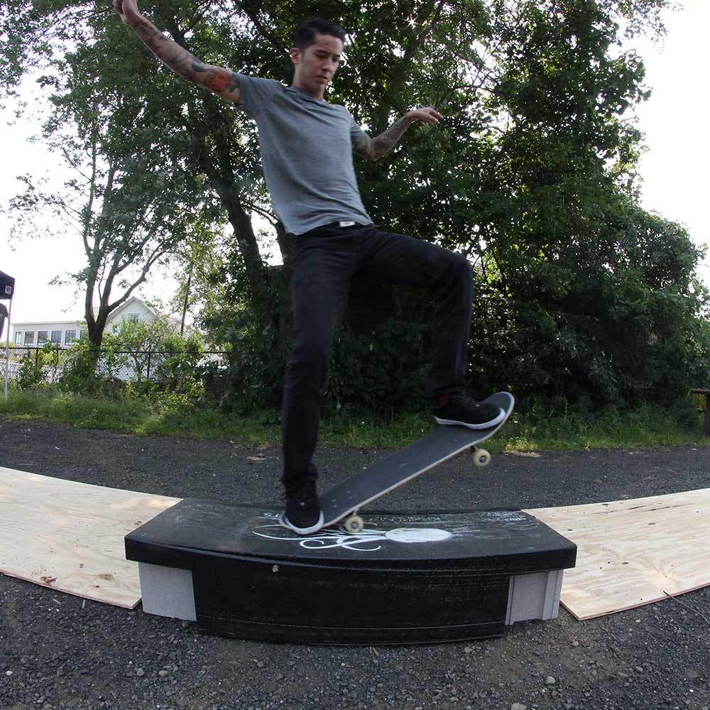 10'' tall 18'' wide, 4ft long manny pad with a steel grind edge on one side